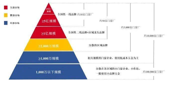 目前,门窗五金行业中,国外门窗具有先发优势,占据部分中高端市场份额,如CMECH希美克(美国)、hoppe好博(德国)、GIESSE吉斯(意大利)、SIEGENIA丝吉利娅(德国);国内本土企业依靠技术创新,品牌优势正在逐步建立,如坚朗、合和、兴三星、好博等;低端市场则包括大量生产规模小、品牌意识弱的企业。