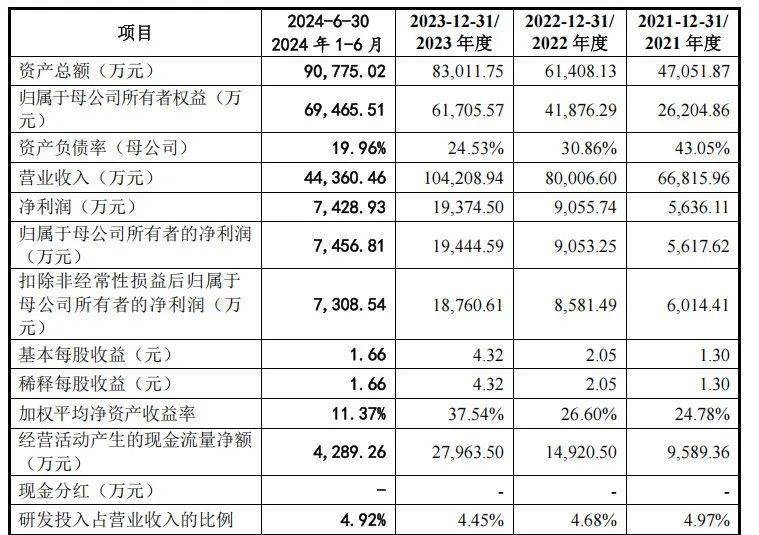 截至2024年12月,公司的员工人数为931人,其中本科及以上263人,大专及以下668人。研发人员139人,研发人员占比14.93%。2021-2024年上半年,公司研发投入占营业收入比重为4.97%、4.68%、4.45%、4.92%。
