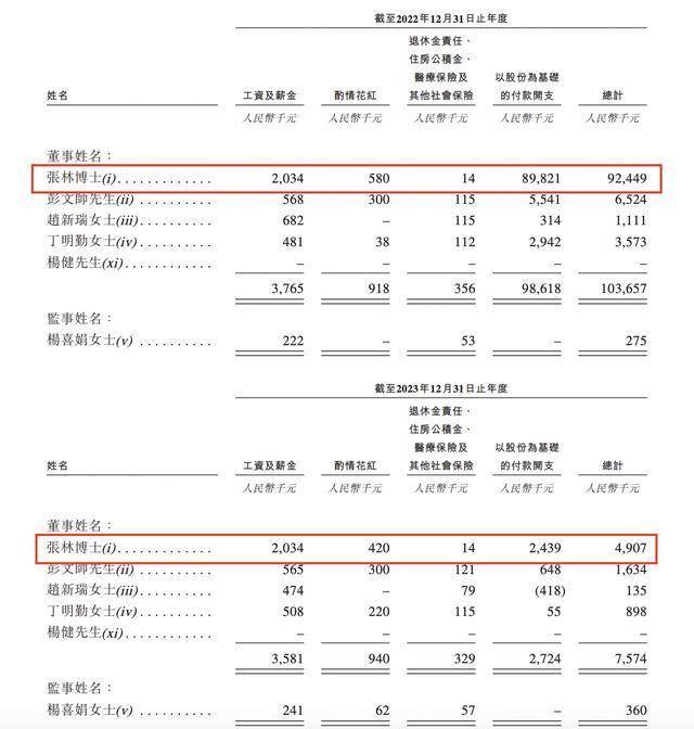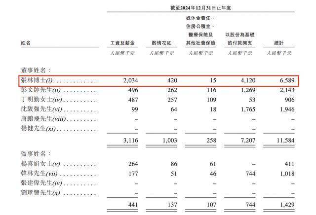 薪酬方面,2022年至2024年,张林从福瑞泰克获得薪酬总计分别为9244.9万元、490.7万元、658.9万元,其中,以股份为基础的付款开支分别为8982.1万元、243.9万元、412万元。