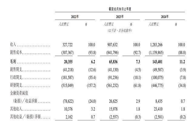 业绩方面,2024年至2022年,福瑞泰克收入分别为3.28亿元、9.08亿元及12.83亿元,年内亏损分别为8.55亿元、7.38亿元、5.28亿元,毛利率分别为6.2%、7.3%和11.2%。
