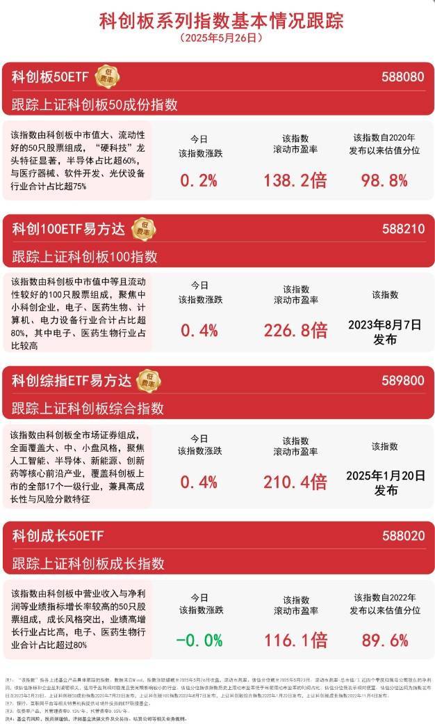 截至收盘,科创100指数、科创综指均上涨0.4%,上证科创板50成份指数上涨0.2%,上证科创板成长指数下跌0.02%。Wind数据显示,截至5月23日,科创板50ETF(588080)近一月获超15亿元资金净流入。
