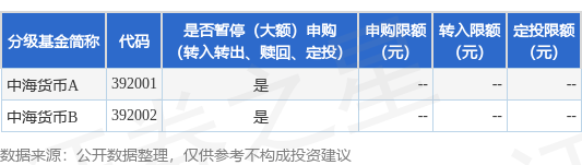 证券之星消息,5月27日中海基金管理有限公司发布《中海货币市场证券投资基金暂停申购(含转换转入、定期定额投资)业务公告》。公告中提示,为维护现有基金份额持有人的利益,保证基金的平稳运行,自2025年5月29日起中海货币市场证券投资基金暂停申购(含转换转入、定期定额投资)业务,下属分级基金调整明细如下: