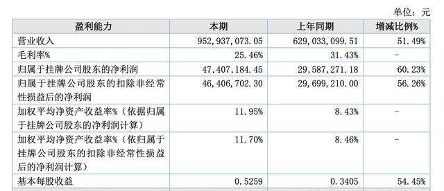 而2024年,公司实现营收为9.53亿元,同比增长51.49%;归母净利润为4740.72万元,同比增长60.23%。