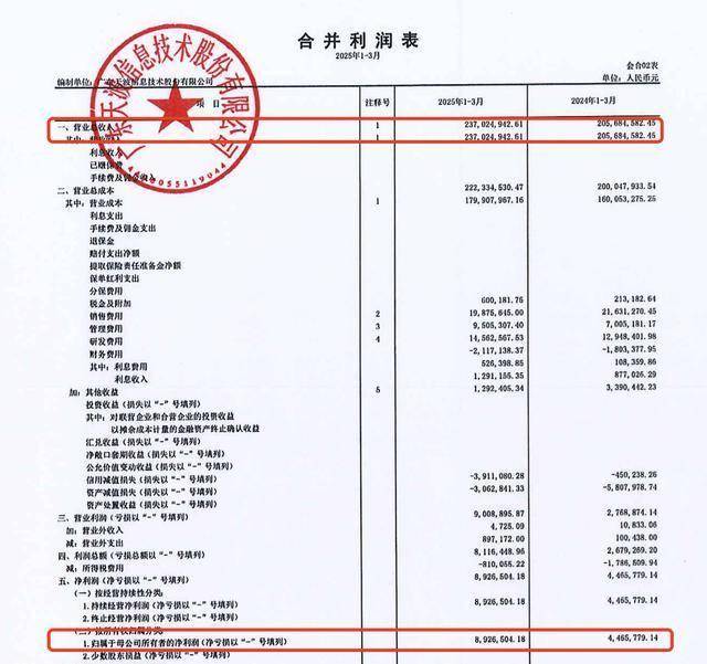 最新业绩显示,2025年一季度,天波信息实现营收为2.37亿元,同比增长15.24%;归母净利润为892.65万元,同比增长99.89%。