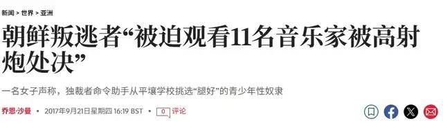 2017年,曾有一名女脱北者称,朝鲜用高射炮处决了11名音乐家,罪行是观看色情视频,她当时被安排在现场目睹。