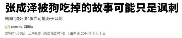 2013年朝鲜重要人物、金正恩姑父张成泽被判死刑枪决,随后香港《文汇报》说张成泽不是被枪决,是在300名官员目睹下被120只狗活活咬死的。之后NBC、泰晤士报、华盛顿邮报均转发报道。