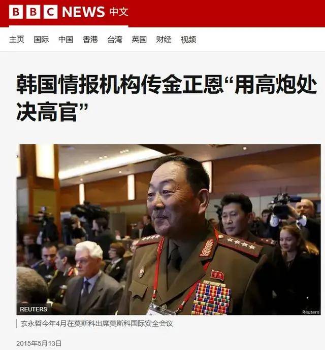 2015年韩国国家情报院透露,朝鲜二号人物、人武部部长玄永哲因为顶撞将军,在平壤某军校以叛国罪被高射炮公开炮决,上百名官员现场围观。