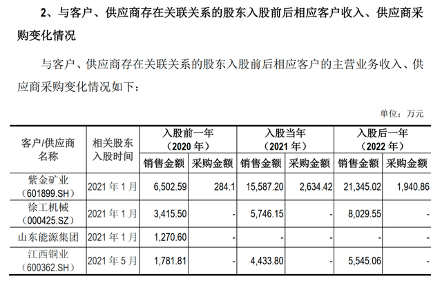 这些客户一边投资,一边也加大了采购。比如紫金矿业,2020年-2022年,海安橡胶对紫金矿业的销售金额从6502.59万元增长到2.13亿元;江西铜业也从1781.81万上涨到了5545.06万元。