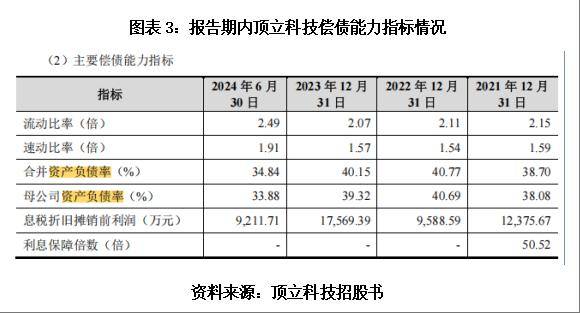 根据第一轮问询回复,截至2024年末顶立科技账面拥有6.01亿元的现金,且并无短期借款,同时2024年末三大偿债指标均向好发展。