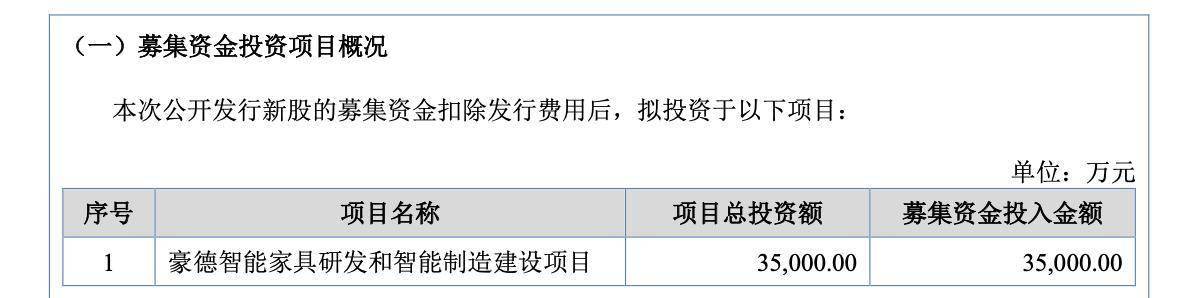 本次IPO,豪德数控拟募资3.5亿元,全部用于豪德智能家具研发和智能制造建设项目。