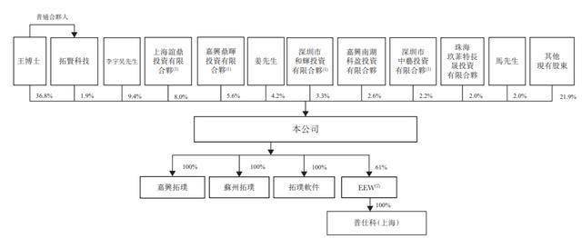 上市前,王宇晗博士直接持股36.82%,以及其作为普通合伙人控制的员工持股平台拓贤科技持股1.93%。王宇晗博士合计可控制38.74%的股份。