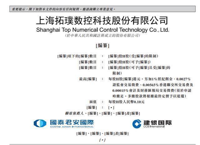 瑞财经 王敏 5月26日,据港交所官网,上海拓璞数控科技股份有限公司(以下简称“拓璞数控”)向港交所主板递交上市申请,国泰君安国际、建银国际为其联席保荐人。