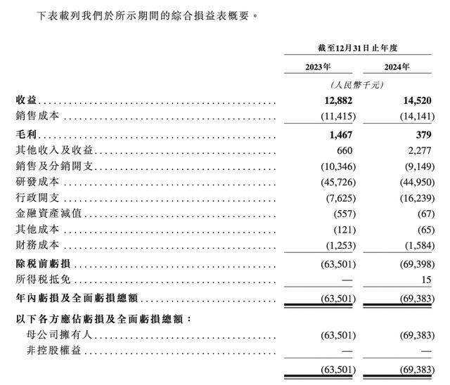 据招股书,2023年-2024年,东方妍美实现收益分别为1288.2万元、1452万元;母公司拥有人应占亏损及全面亏损总额分别为6350.1万元、6938.3万元。