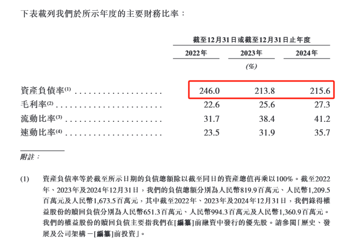 泽景电子近几年资产负债率持续超过200%,主要是因为权益股份的赎回负债金额较高。权益股份的赎回负债主要指公司以往融资中发行的优先股。