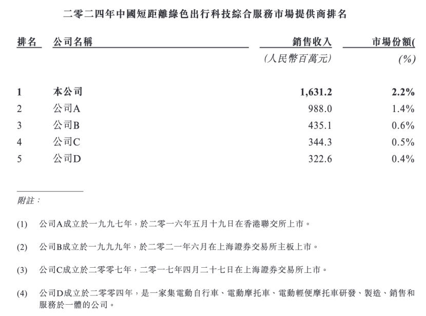 弗若斯特沙利文数据显示,2024年中国短距离绿色出行服务市场规模达722亿元,行业前五名的市占率总和才5.1%,排名第一的快驴科技也仅有2.2%的市占率。