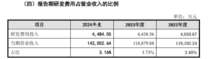 关键是该公司研发人员的构成。一是该公司的研发人员在公司员工中的占比在报告期表现为递减,从2022年末的占比11.72%,到2023年末的10.73%,再到2024年末的8.62%,对于一家致力于IPO的公司来说,这种情况是明显不正常的。