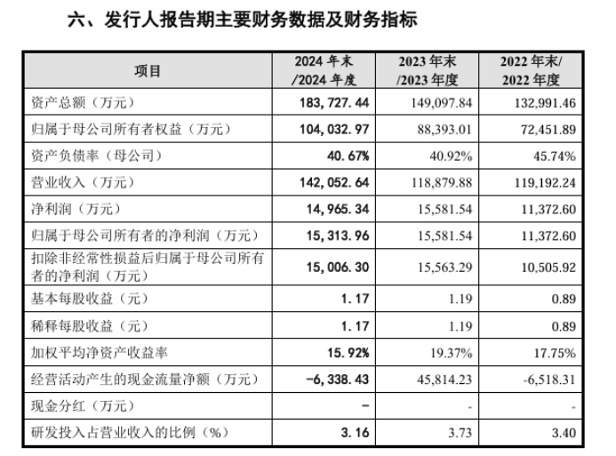 再看净利润指标,2022年到2024年分别为1.14亿元、1.56亿元,1.50亿元。总体来看,公司净利润也表现为增长的势头。但细看不难发现,该公司2024年的净利润较上年减少了约600万元。