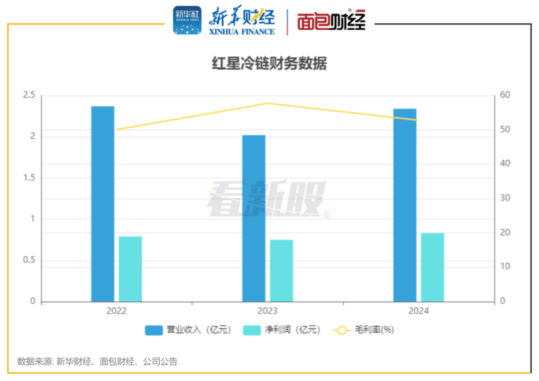红星冷链近三年的营收出现波动。2024年,公司实现收入2.34亿元,同比增长15.84%,但仍低于2022年的收入水平。2022年至2024年,公司净利润分别为7911.2万元、7531.2万元、8288万元。