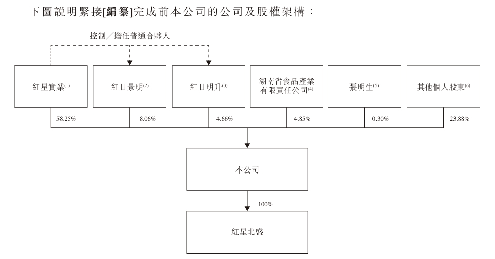 截至最后实际可行日期,红星实业控制公司70.97%投票权,包括由其直接拥有58.25%、由红日景明及红日明升(其普通合伙人为红星实业)分别拥有8.06%及4.66%。