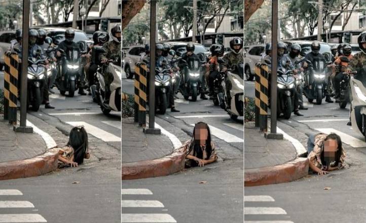 根据菲律宾网上疯传的照片,这起事件发生在5月26日下午5时左右,一名身形轻盈的年轻女子从街角的排水道里爬出来。
