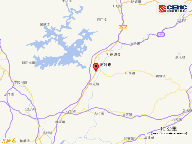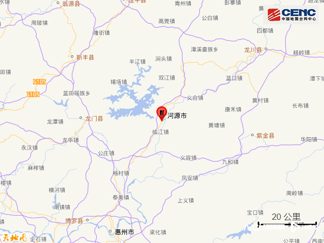 根据中国地震台网速报目录,震中周边200公里内近5年来发生3级以上地震共14次,最大地震是2023年3月8日在广东河源市东源县发生的4.5级地震(距离本次震中23公里)。