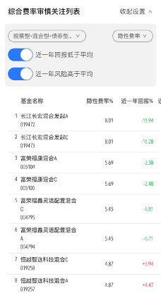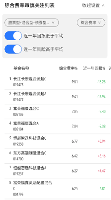 除了长江长宏,富荣福康、恒越智选、东方高端制造、富荣福鑫等多只产品的综合费率也超过了6%。