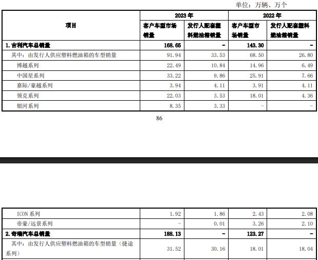 目前,公司高压塑料燃油箱的收入主要也来自吉利。