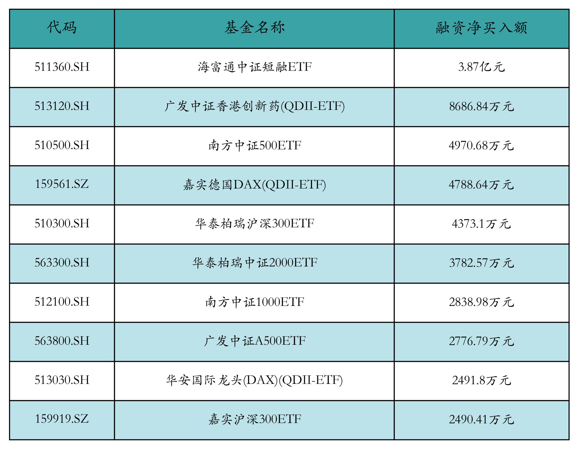5月29日ETF融资净买入额前三位分别为:海富通中证短融ETF(3.87亿元)、广发中证香港创新药(QDII-ETF)(8686.84万元)和南方中证500ETF(4970.68万元),前10具体见下表: