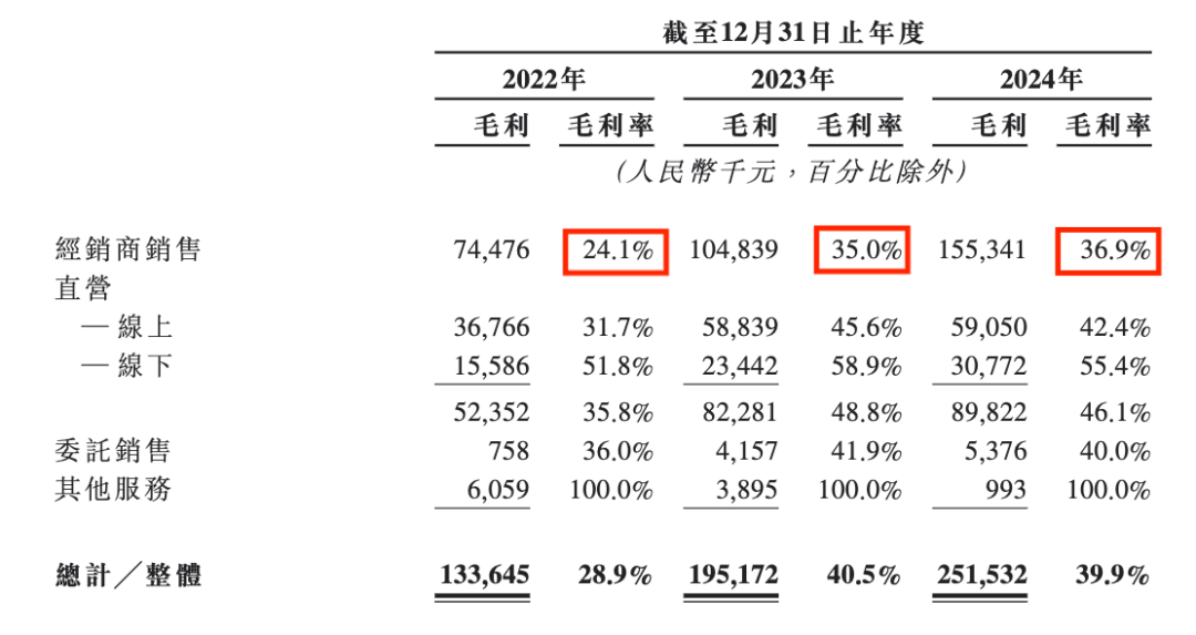 加上乐自天成营收来自经销模式占比更大,他们在经销商采购价格方面,会给出一定水平的折扣价,此举也会压缩利润空间,导致整体毛利率不及以直营渠道为主的泡泡玛特。
