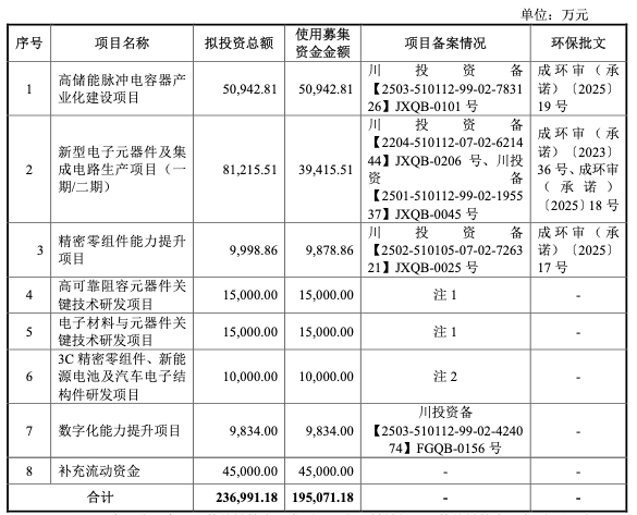 此次IPO,宏明电子拟募集资金19.51亿元,用于高储能脉冲电容器产业化建设项目、新型电子元器件及集成电路生产项目等8大项目,其中补充流动资金4.5亿元,占募资总金额约23%。