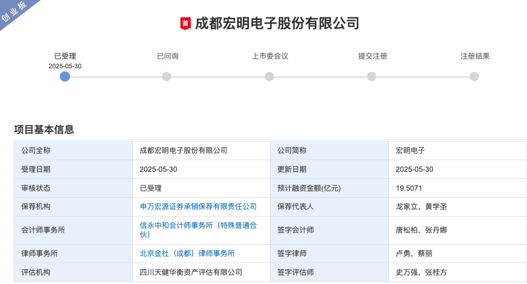 5月30日,成都宏明电子股份有限公司(以下简称宏明电子)申报创业板IPO获深交所受理,拟募资19.5亿元用于高储能脉冲电容器产业化等8个项目。然而,这家拥有60余年历史的电子元器件企业,在招股说明书中暴露出业绩三连降、客户集中度较高、历史股权纠纷等问题,引发市场对其持续盈利能力和IPO合规性的担忧。