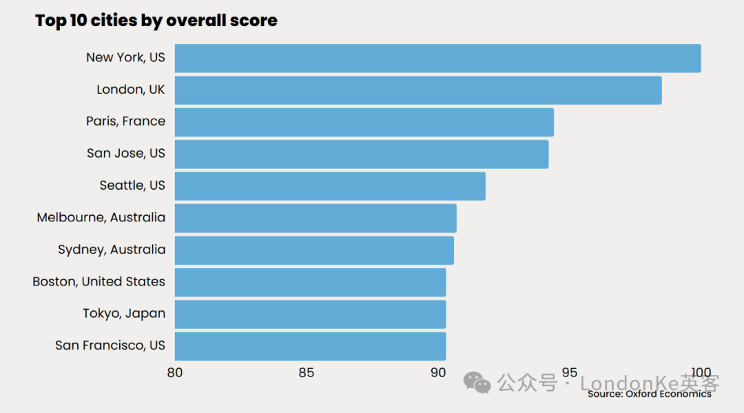 其中,伦敦在经济和人力资本方面表现出色,凸显了其作为全球金融、商业和教育中心的地位。
