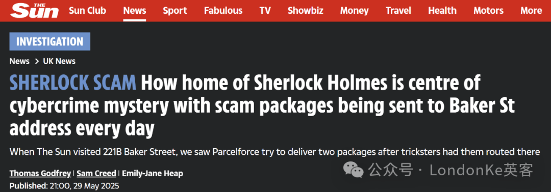 伦敦福尔摩斯博物馆频繁接收假冒退货包裹