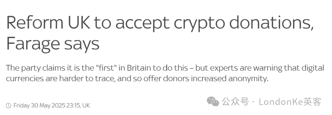 近日,英国改革党(Reform UK)领导人法拉奇(Nigel Farage)宣布,该党将成为英国首个接受加密货币捐款的政党。