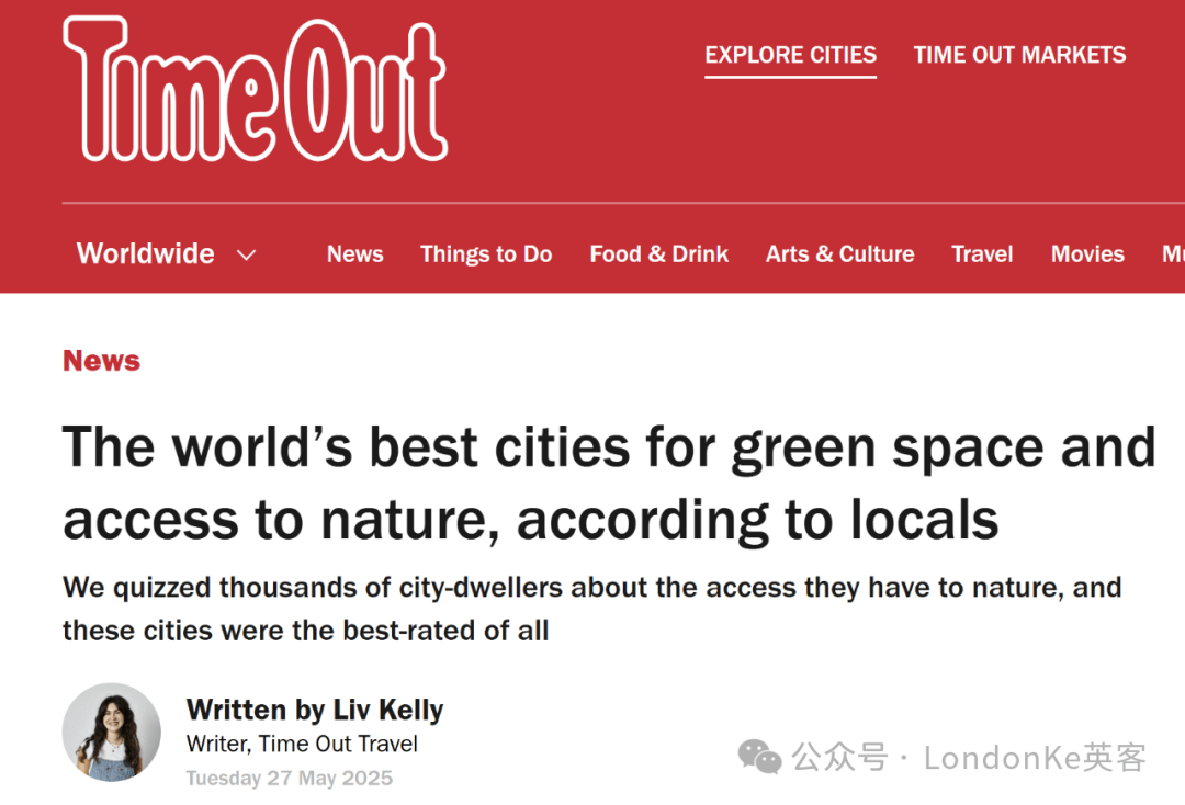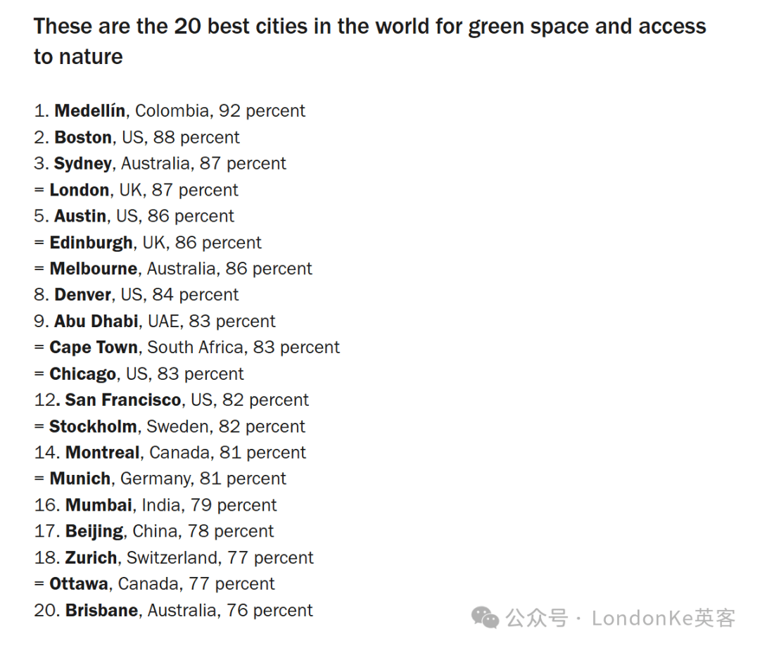 伦敦2025全球城市指数位列第二,绿色空间表现优异