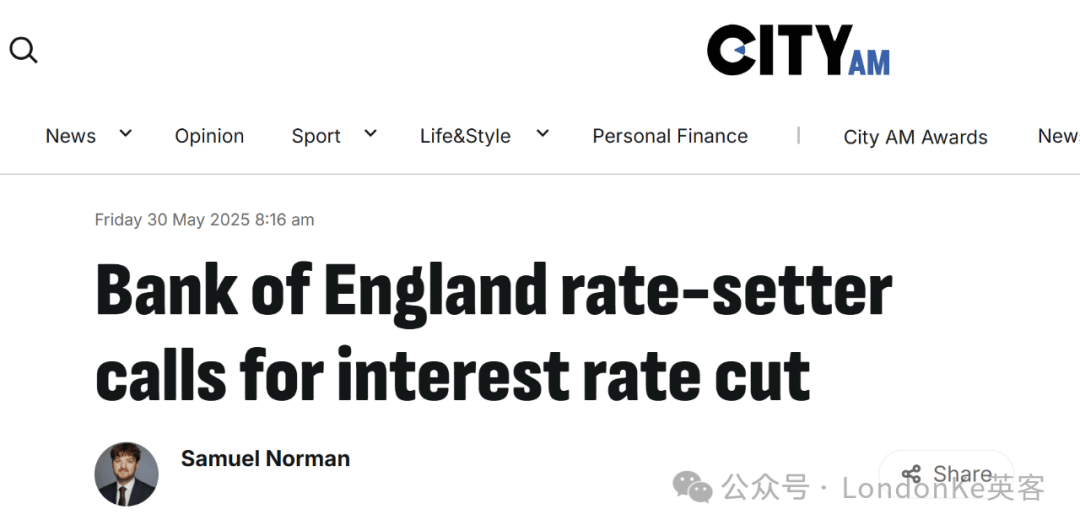 ● 英国央行利率制定者呼吁进一步降息