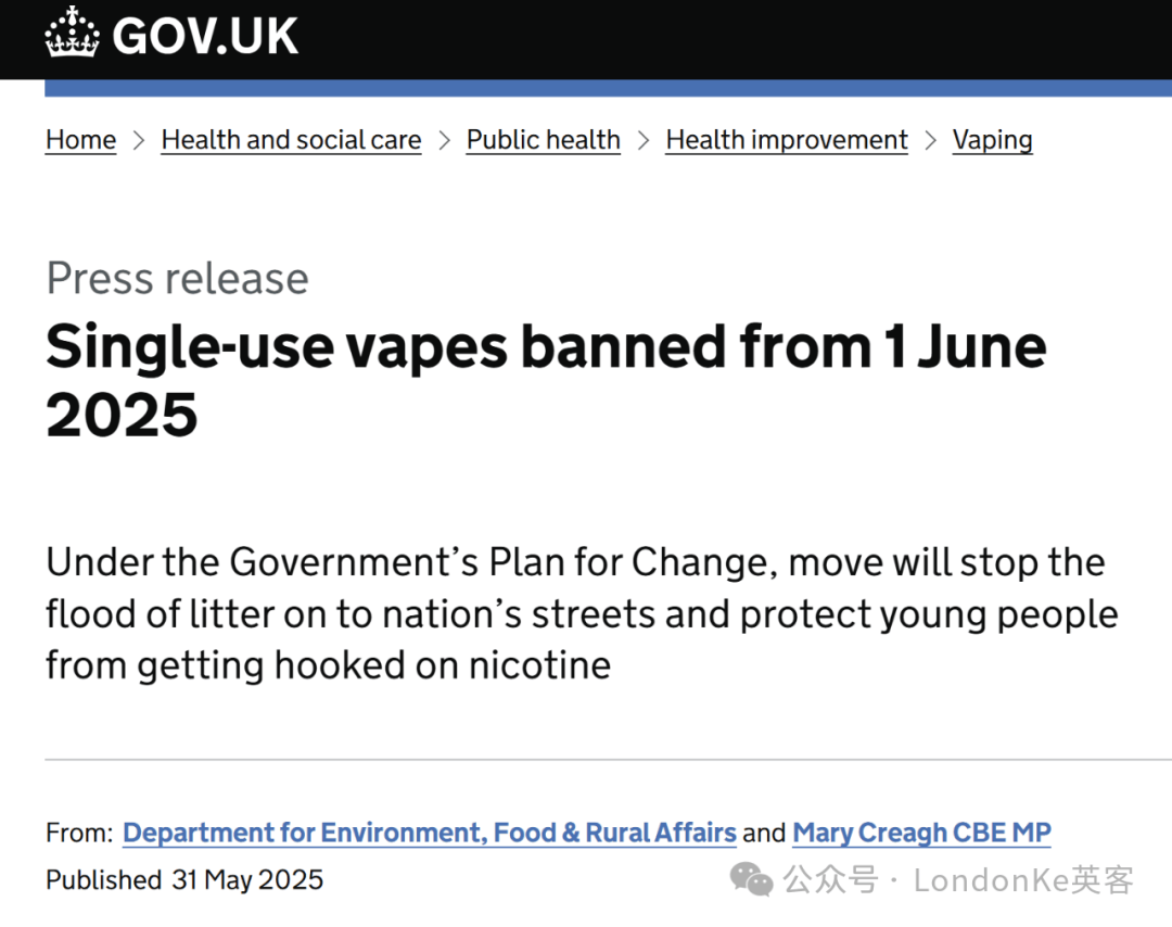 从明日(6月1日)起,英国政府将全面禁止在所有商店销售一次性电子烟,以应对学校电子烟的激增及对环境造成的严重影响。