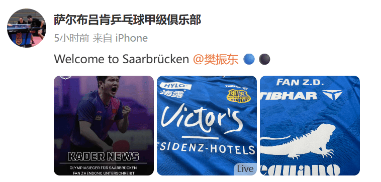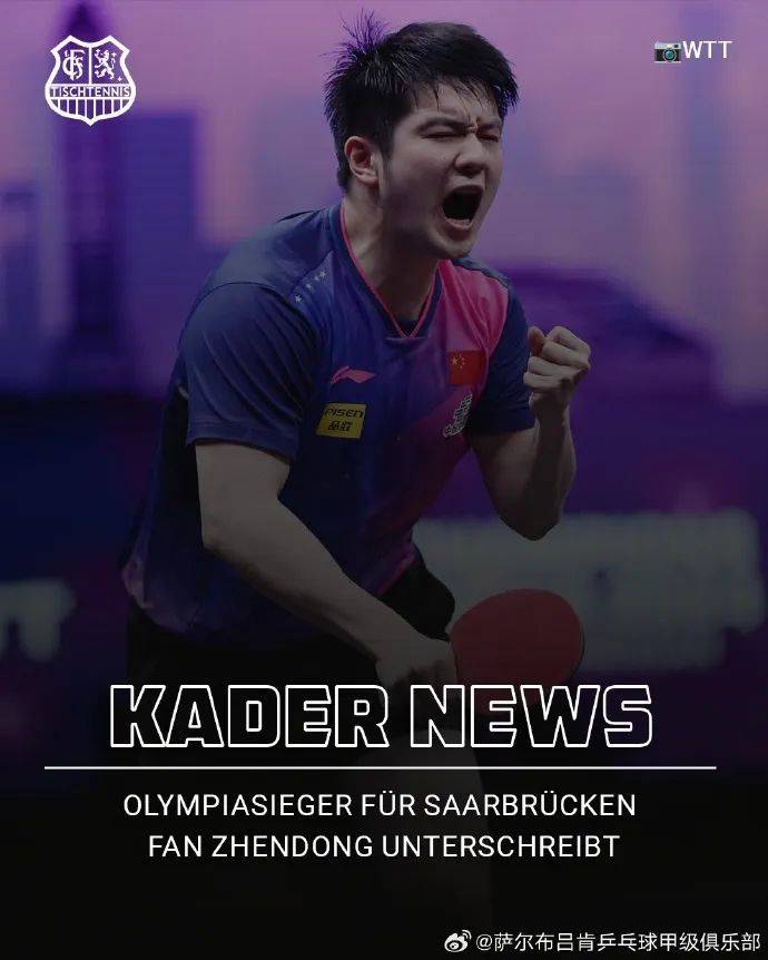 在俱乐部官方声明中,樊振东表示:我真的很期待在萨尔布吕肯和德甲的新挑战,体验新的环境——并与球队一起赢得更多的胜利。