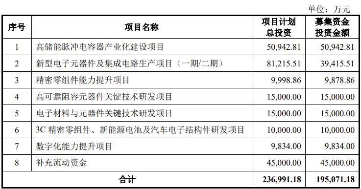 公司本次IPO拟募资19.5071亿余元,除4.5亿元用于补充流动资金外,其余资金用于如下7个项目: