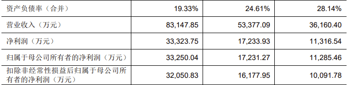 2022年、2023年、2024年,公司实现营业收入分别为3.616亿元、5.338亿元、8.315亿元,扣非归母净利润分别为1.009亿元、1.618亿元、3.205亿元。