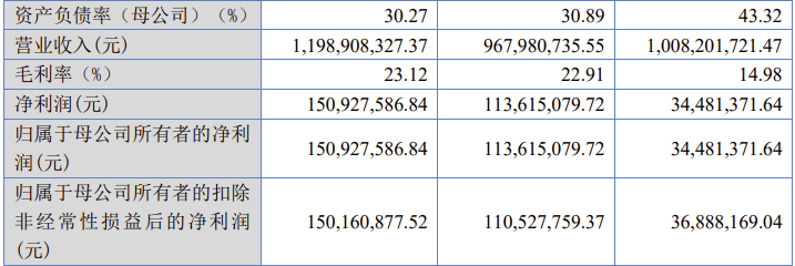 2022年、2023年、2024年,公司实现营业收入分别为10.082亿元、9.680亿元、11.989亿元,扣非归母净利润分别为0.369亿元、1.105亿元、1.502亿元。