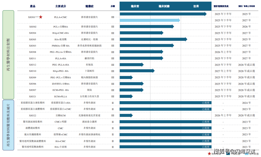 招股书上的阐述是这样的:采用行业领先的高分子聚合物微球技术,在一项涵盖252名受试者的多中心临床实验中,XH301在疗效方面显示优于进口透明质酸对照产品,安全性方面则无显著差异。公司称预计2025年下半年早期完成国家药监局的注册。