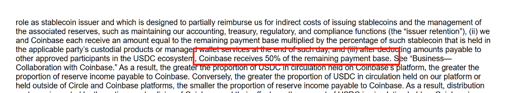 但这次分拆并没有终结双方现金流的分配,两家公司仍然瓜分了支持USDC的储备金利息收入。根据Circle的S-1备案文件,Circle与Coinbase 之间有以下收益分配协议: