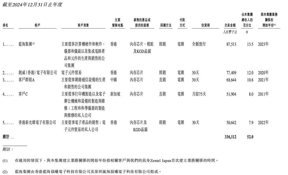 截至2024年12月31日止三个年度,来自其五大客户的收入分别约为3.90亿元、3.88亿元、3.36亿元,分别占相应年度总收入的约64.0%、66.8%、52.0%。