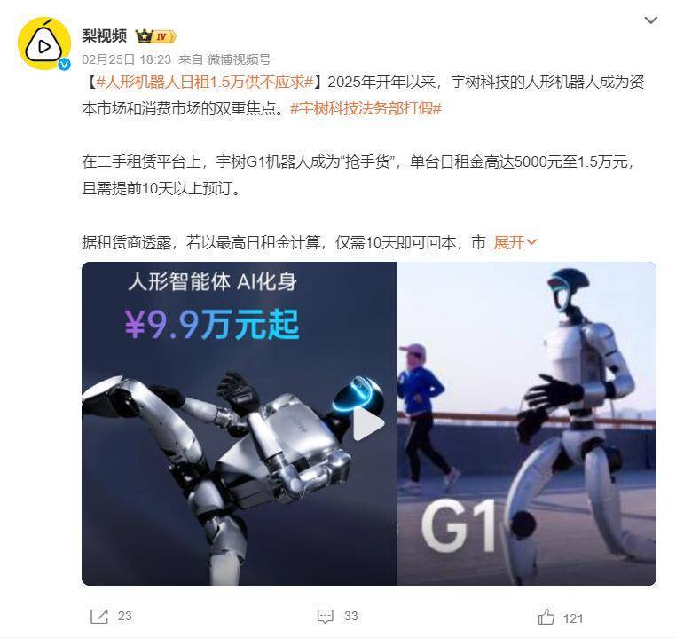 宇树机器人的热销,从二手市场也能看出来。今年2月,宇树G1机器人在二手租赁平台上成为“抢手货”引发关注。据媒体报道,一台G1机器人一手售价为9.9万元,单台日租金为5000元至1.5万元,以此计算,约1个星期到20天就能回本。即便租金不低,宇树的人形机器人在二手租赁市场仍供不应求。能跳舞、会武术,前段时间还登上了由央视主办的“CMG世界机器人大赛·系列赛进行格斗比拼,持续提升的性能是宇树机器人备受消费者青睐的基础。