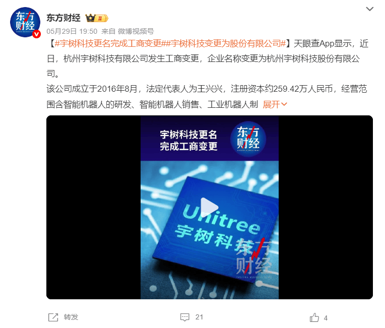 5月30日,宇树就更名一事进行了回应,公司市场部回应称:“这是公司运营方面的常规变更。”