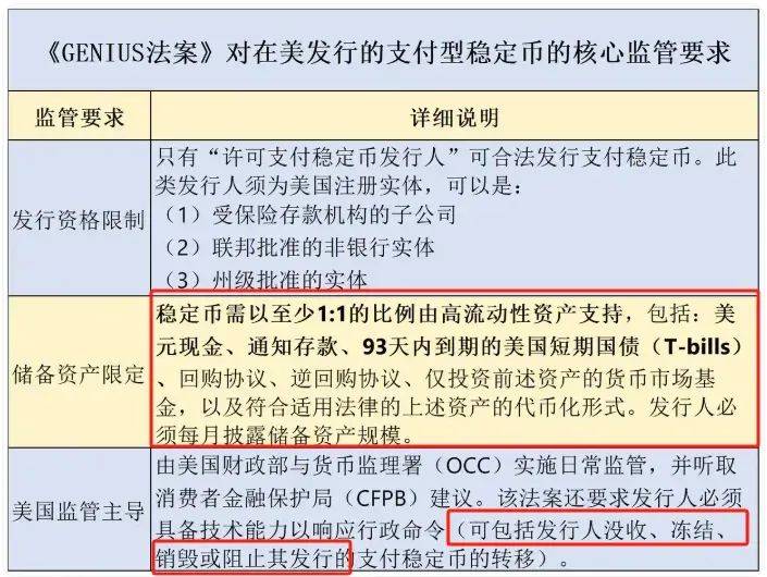 就是为了给美国续命,现在美国的信用不行了,美债发不出去了,于是出了稳定币法案,要求每发行一美元稳定币,就要购买1美元等价值的 高流动性美元资产,其中就是以美债为主 。