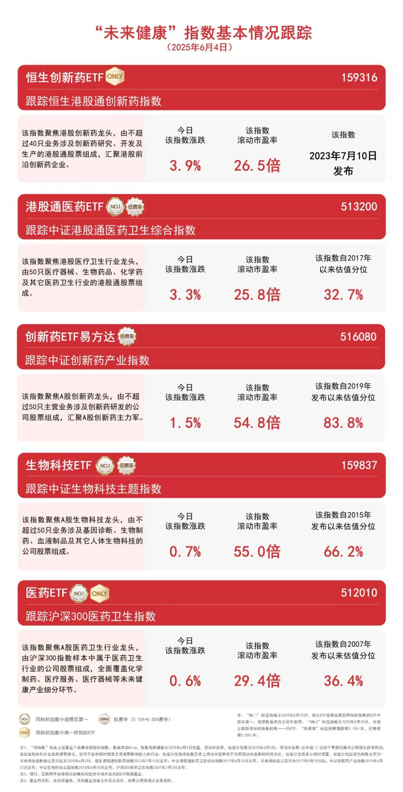 截至收盘,恒生港股通创新药指数上涨3.9%,中证港股通医药卫生综合指数上涨3.3%,中证创新药产业指数上涨1.5%,中证生物科技主题指数上涨0.7%,沪深300医药卫生指数上涨0.6%。