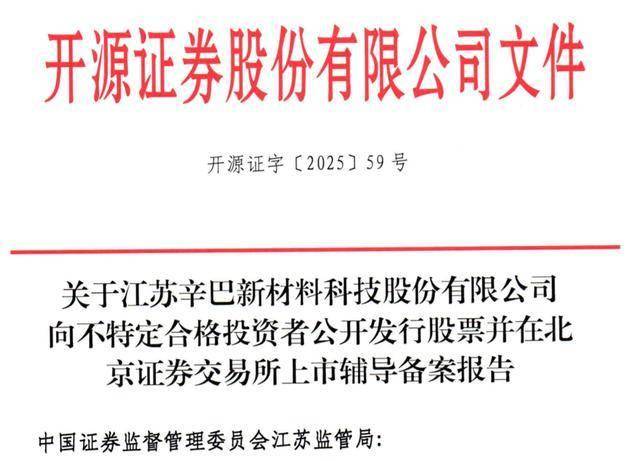瑞财经 严明会 6月4日,江苏辛巴新材料科技股份有限公司(以下简称:辛巴科技)在江苏证监局完成IPO辅导备案,拟北交所上市,辅导机构开源证券。
