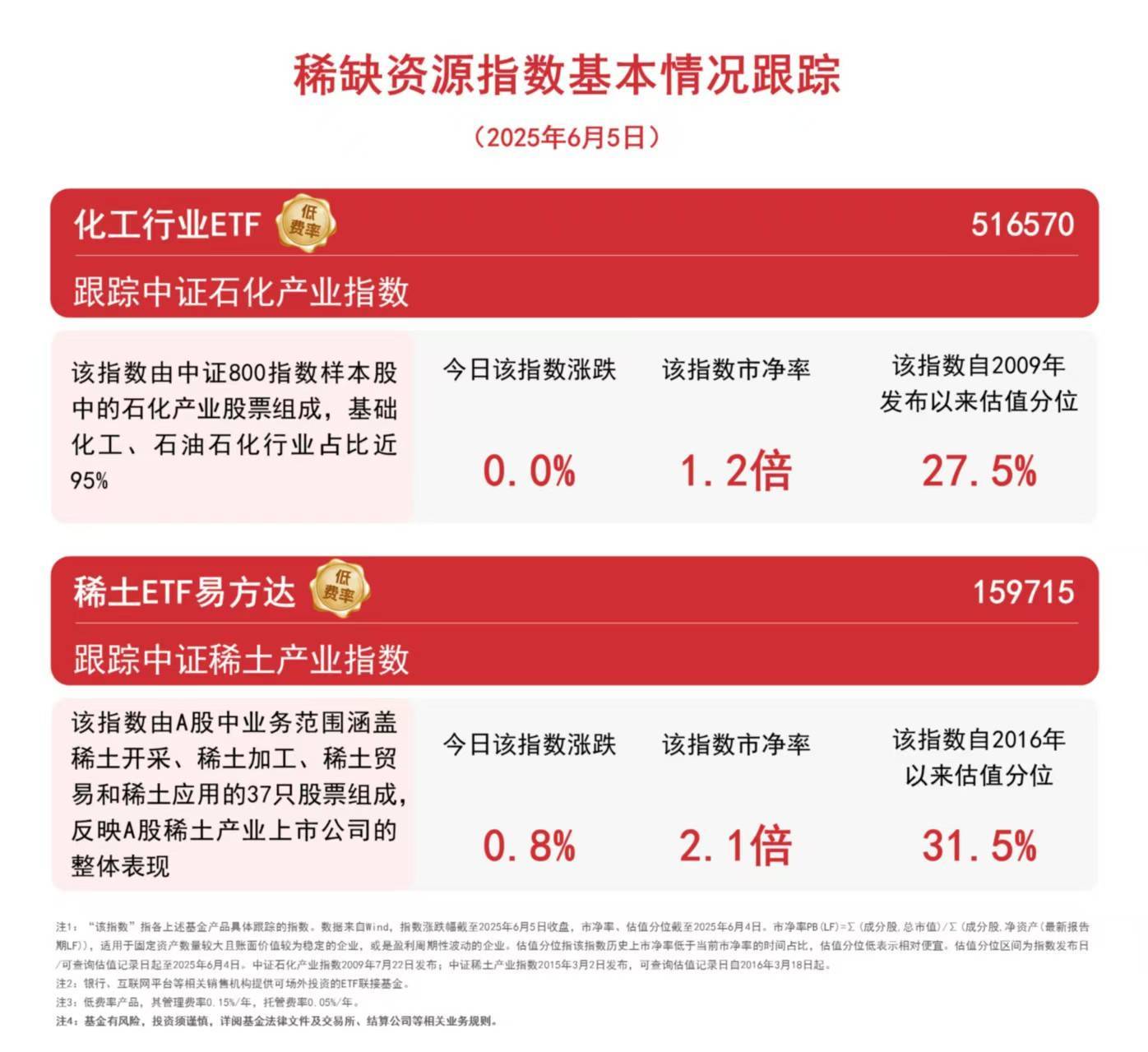 稀缺资源指数震荡,稀土ETF易方达(159715)、化工行业ETF(516570)等助力产业布局